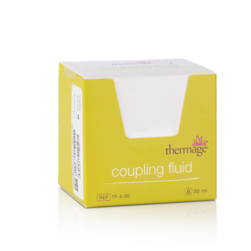 Thermage Coupling Fluid contributes to consistent electrical contact between the skin and the Thermage Tip and reduces friction.